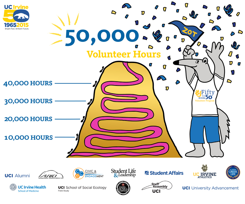 The Fifty for 50 Volunteer Program highlighted volunteer programs and civic engagement that helped UCI shape a bright future for the campus and the local community.